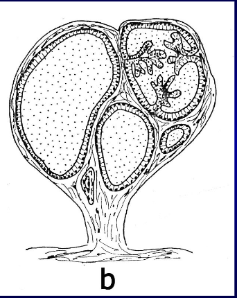 tumors containing mature or immature cells or tissues representative of more than one germ layer and sometimes all the three layers.