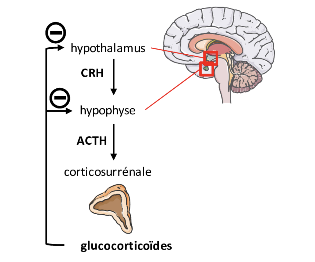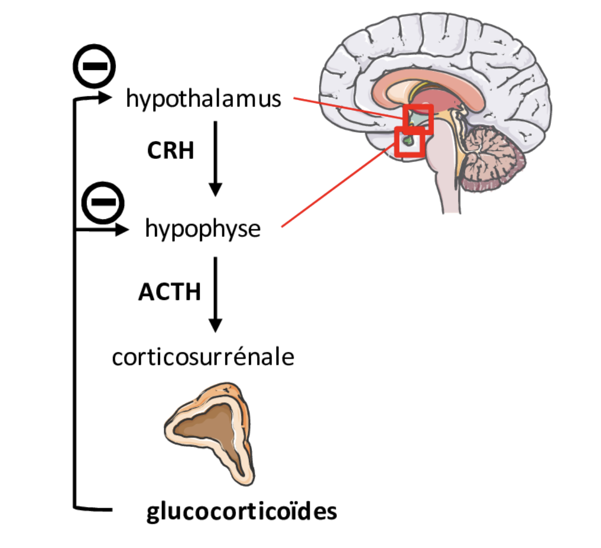 Les glucocorticoïdes inhibent la libération de CRH par l’hypothalamus et la libération d’ACTH par l’hypophyse