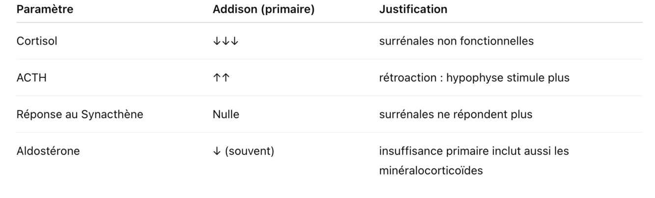 Quel type de tests fait-on pour confirmer la maladie d’Addison ? Nomme-les. (4)