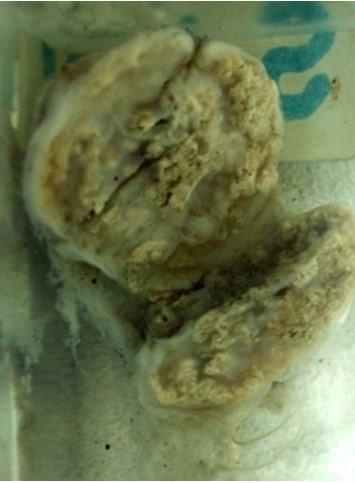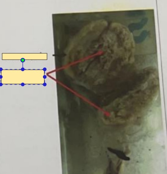 The Mass is rounded _______ well defined _______ in color. It shows _____________ of __________.