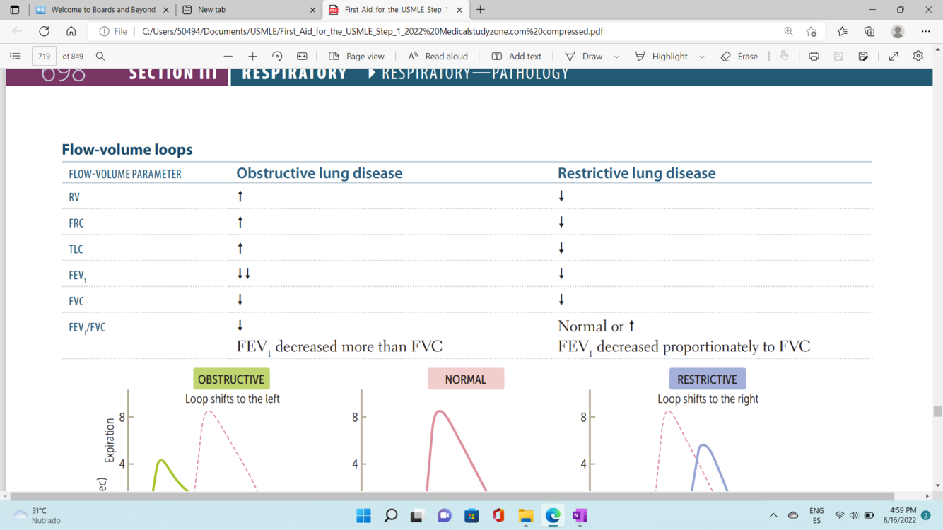 Explain the flow volume loops of obstructive and restrictive respiratory diseases.
