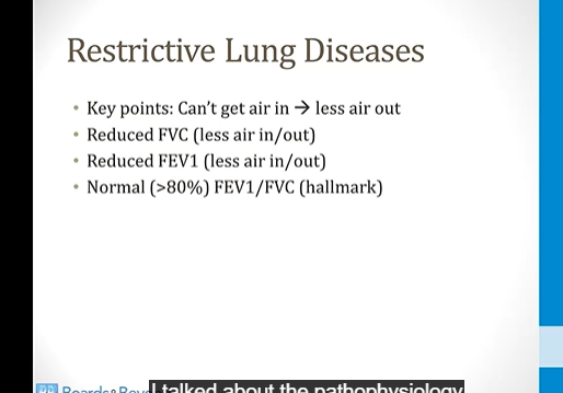 What is the FVC, FEV1 and FEV1/FVC in restrictive lung disease?