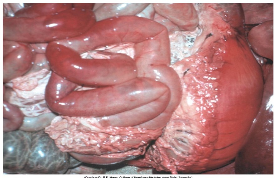 - can be difficult to distinguish from ruminal tympany in ruminants