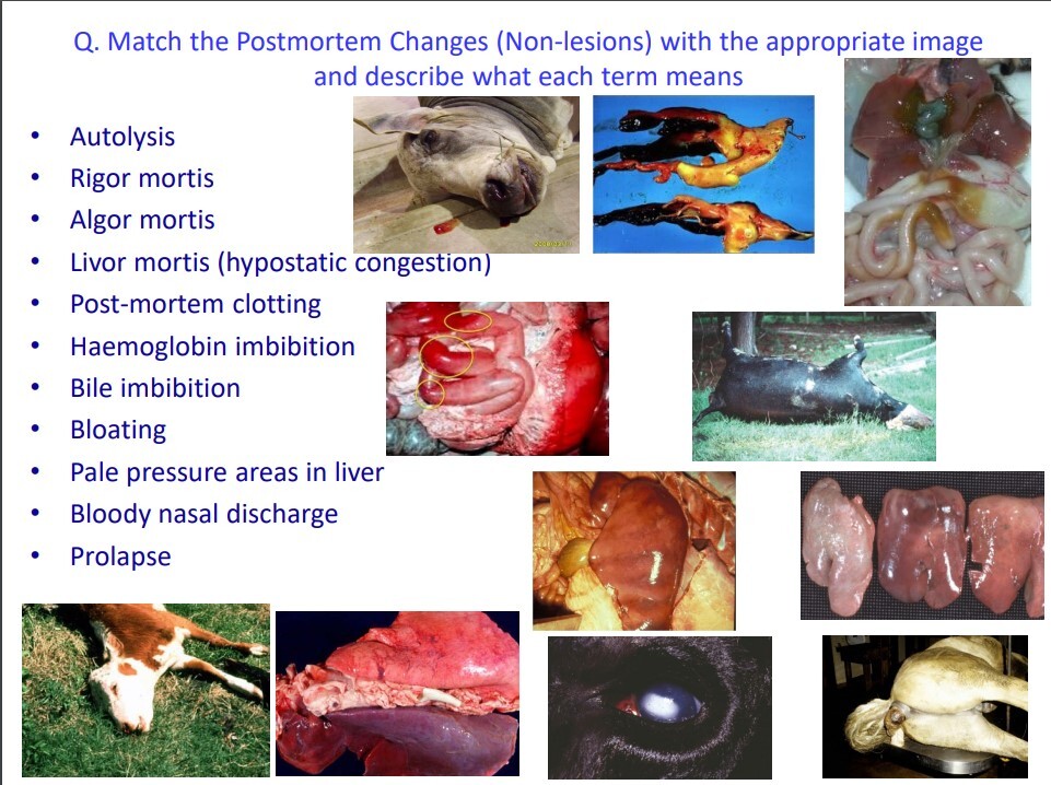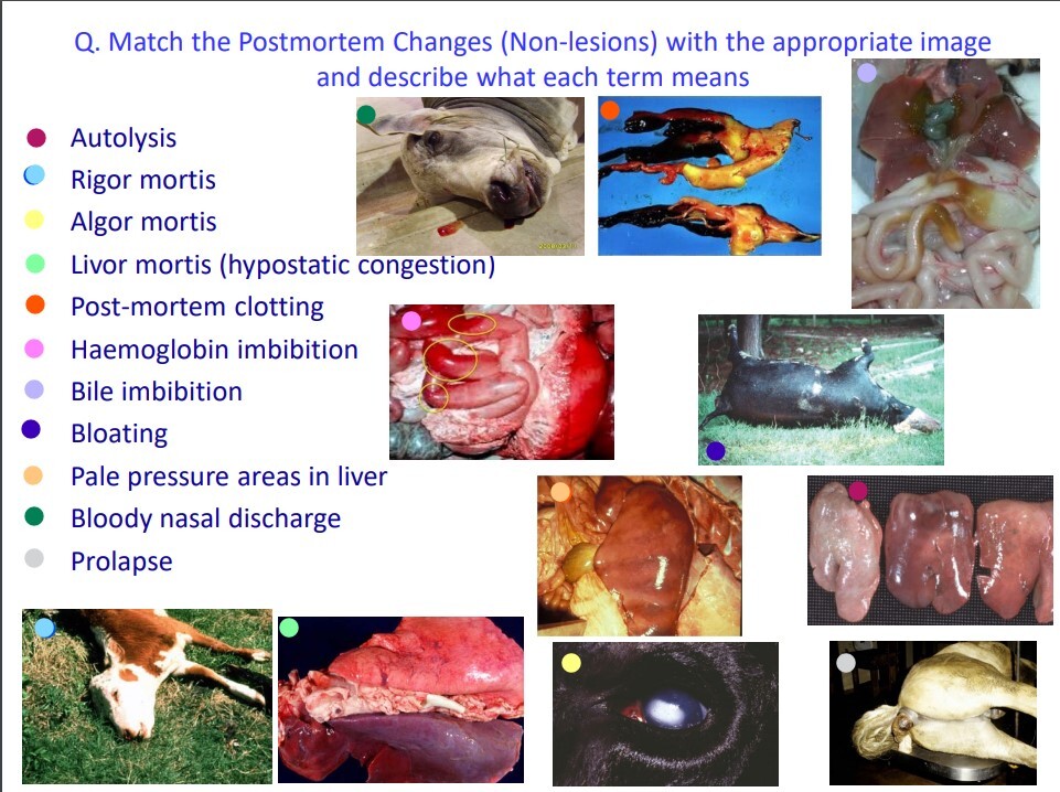 Post mortem we may observe bloating, organ displacment, livor pallor, mucosal sloughing, bloody nasal discharge and rectal/vaginal prolapse why do these changes occur ?