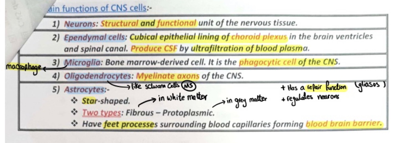 what are the main functions of CNS cells?