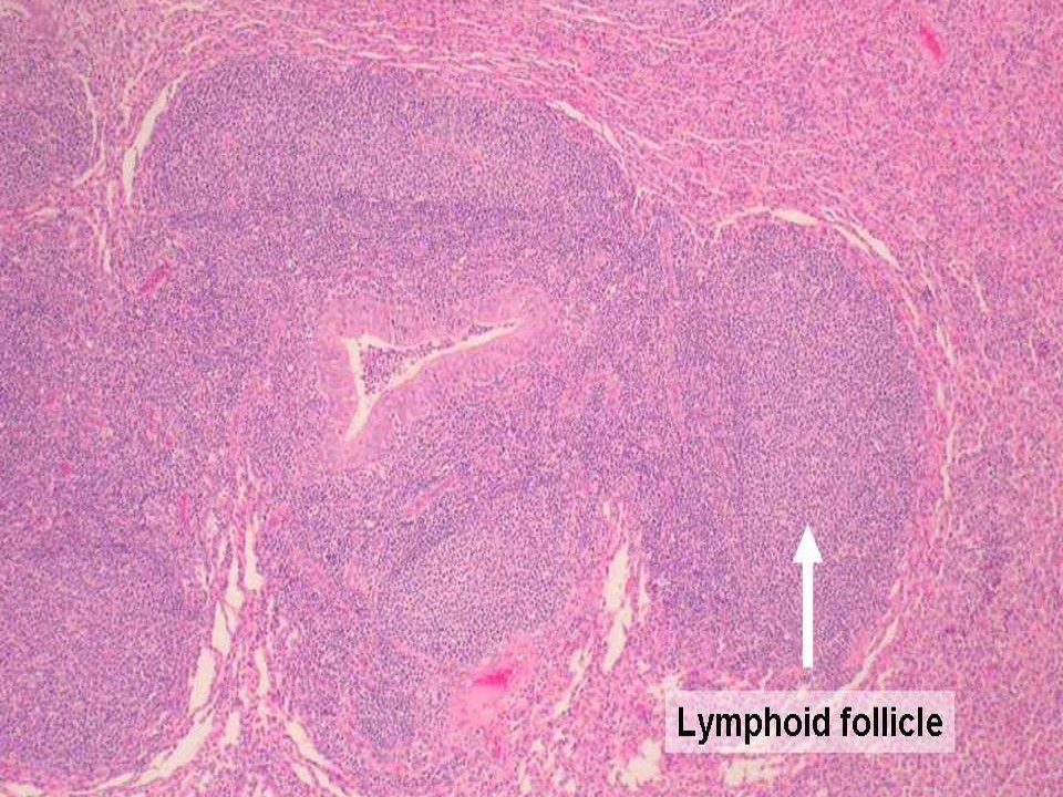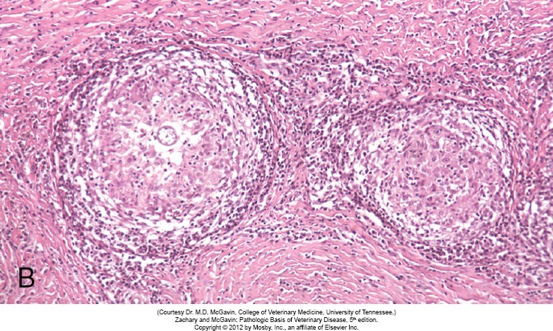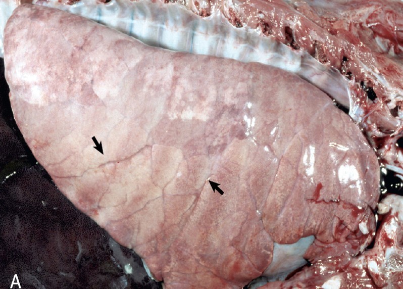 Lymphoid cuffing around a bronchiole. Enzootic pneumonia