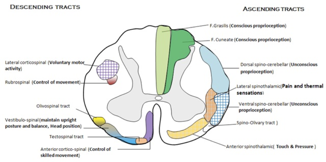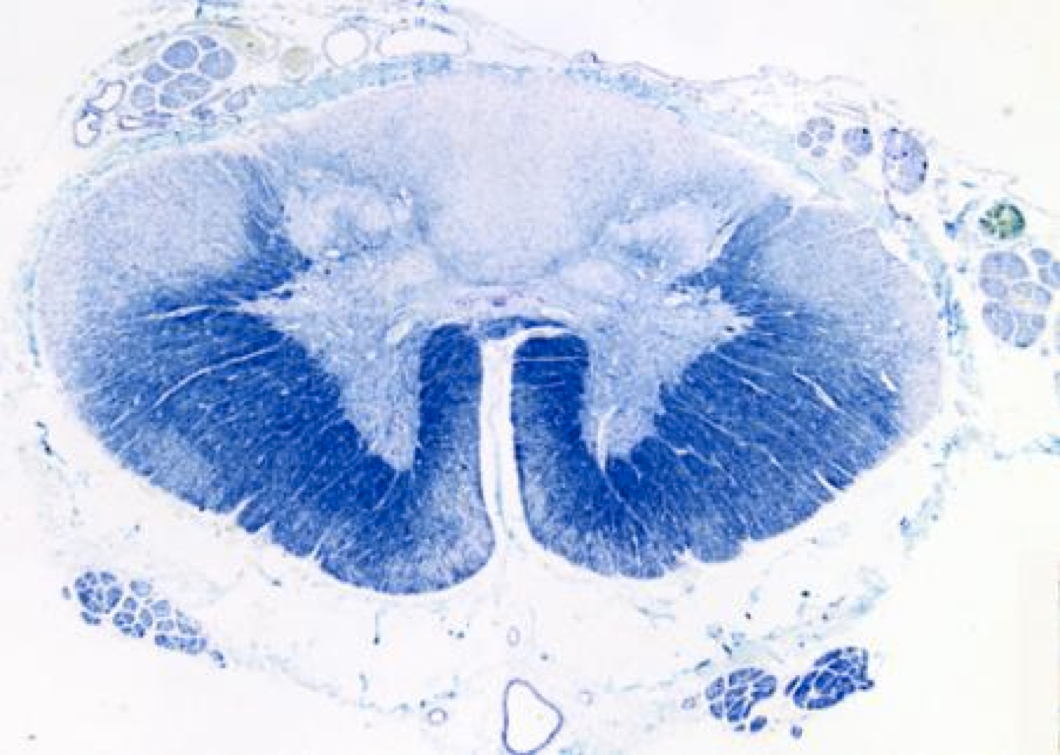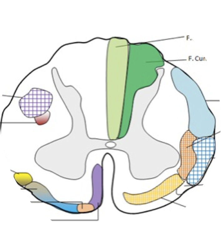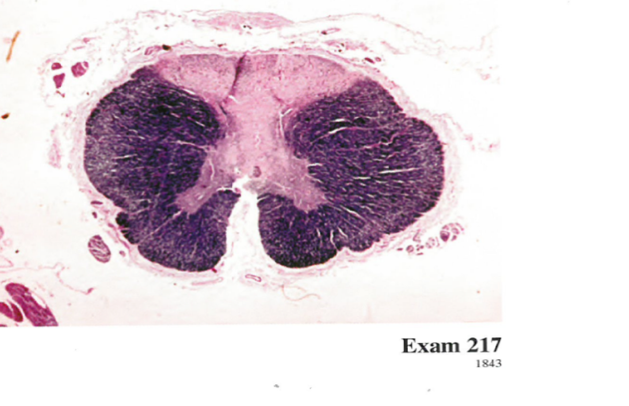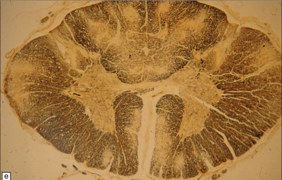 Friedrich’s ataxia: tract degeneration - Dorsal columns, spinocerebellar tracts, lateral corticospinal tracts and DRG