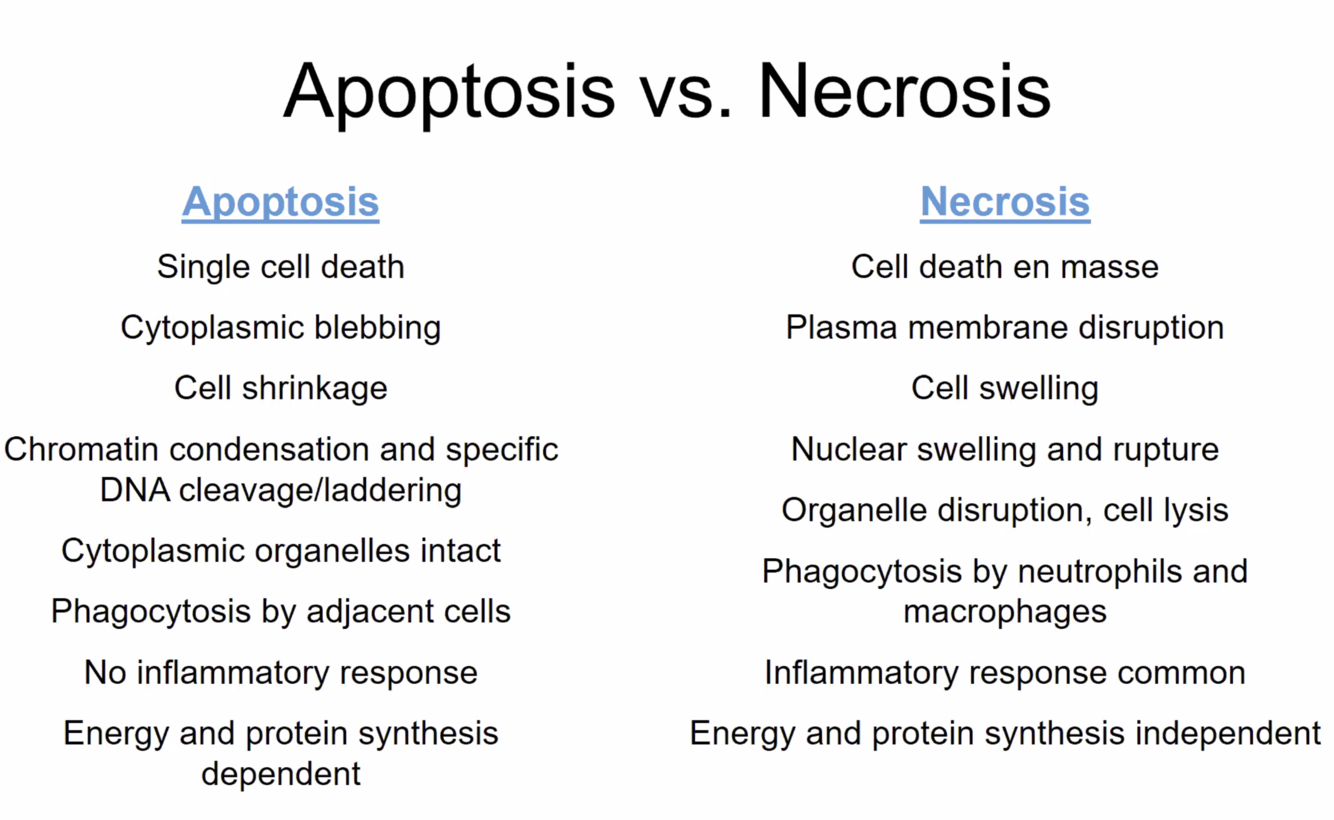 random DNA breaks (karyolysis, pyknosis, karyorrhexis (fragmentation)