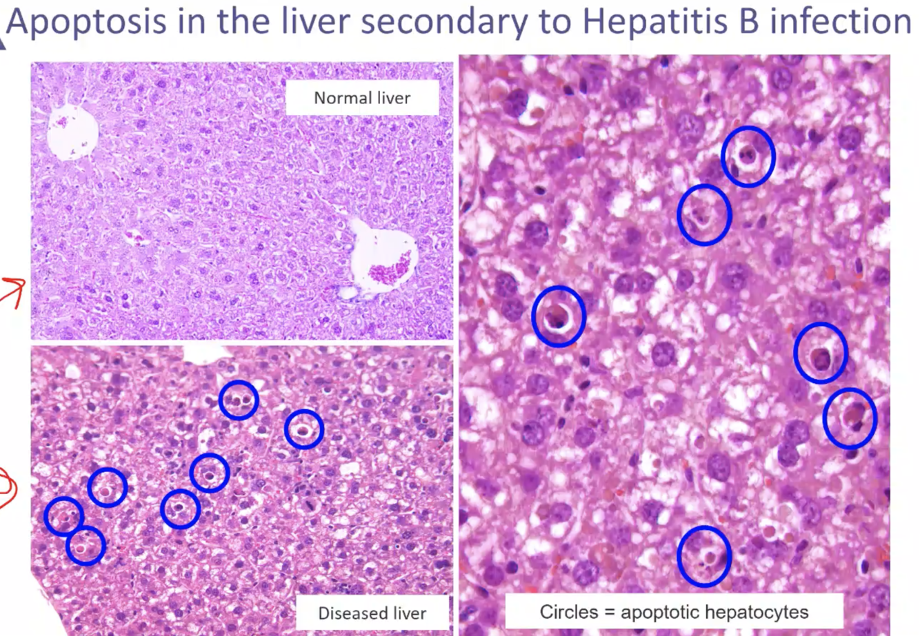 mitochondrial damage -> leakage of apoptotic proteins which cause cell damage
