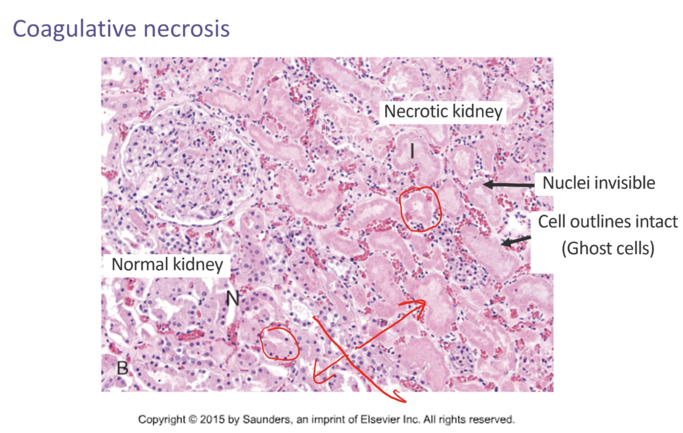 Leads to ghost cells (lack of nuclei but cells still intact)