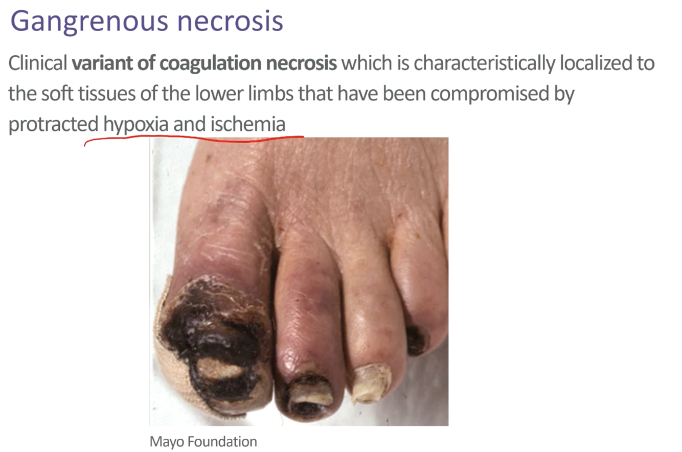 Clinical variant of coagulation necrosis which is characteristically localized to soft tissues of lower limbs due to hypoxia/ischemia