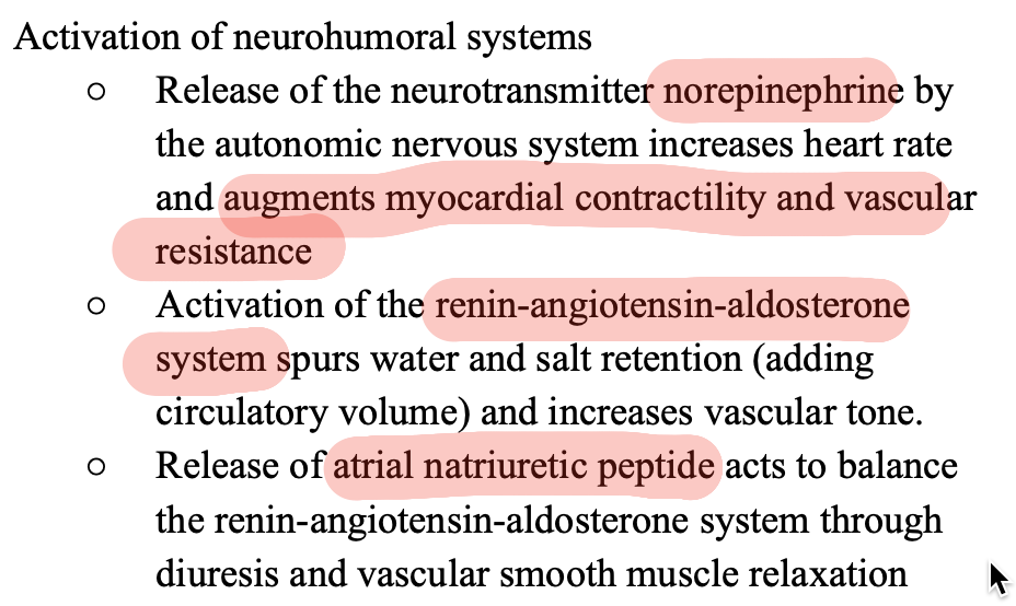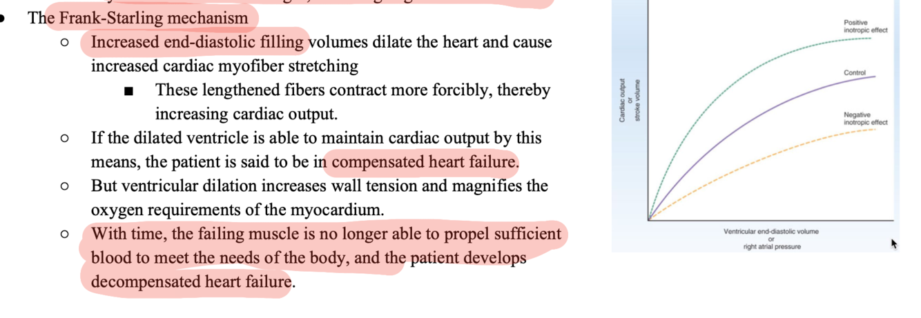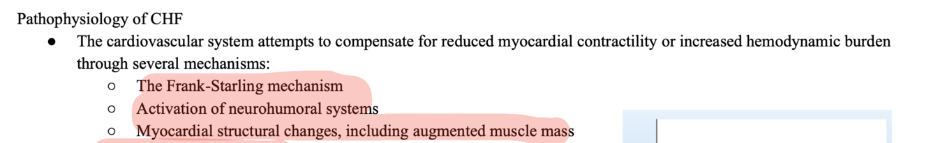 The cardiovascular system attempts to compensate for reduced myocardial contractility or increased hemodynamic burden through three main mechanisms.