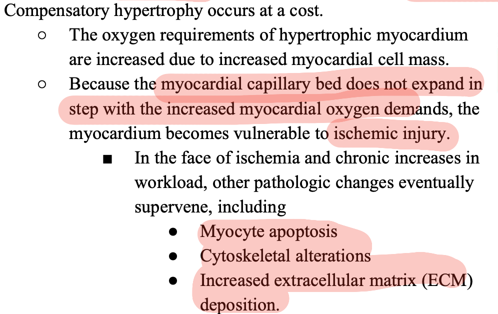 Why/How can compensatory hypertrophy in CHF cause ischemic injury?