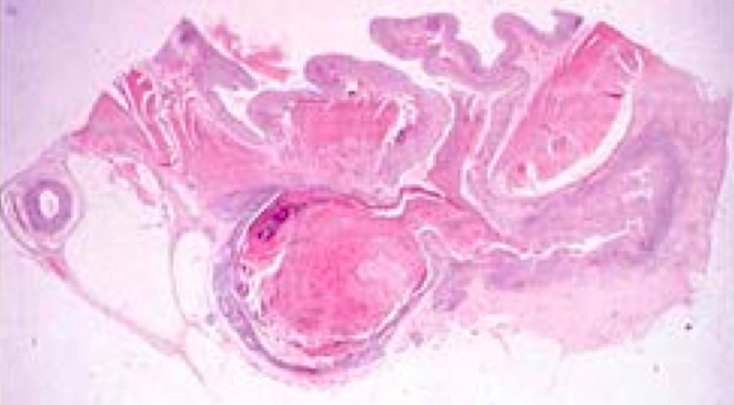 Note the well-differentiated appearance of this squamous cell carcinoma. These involve loss of p53/p16 tumor suppressor genes and overexpression of RB.