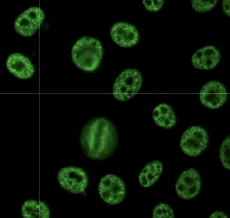 Incubate patient’s serum overnight -> Add fluorescing anti-IgG antibody that glows if ANAs are present.