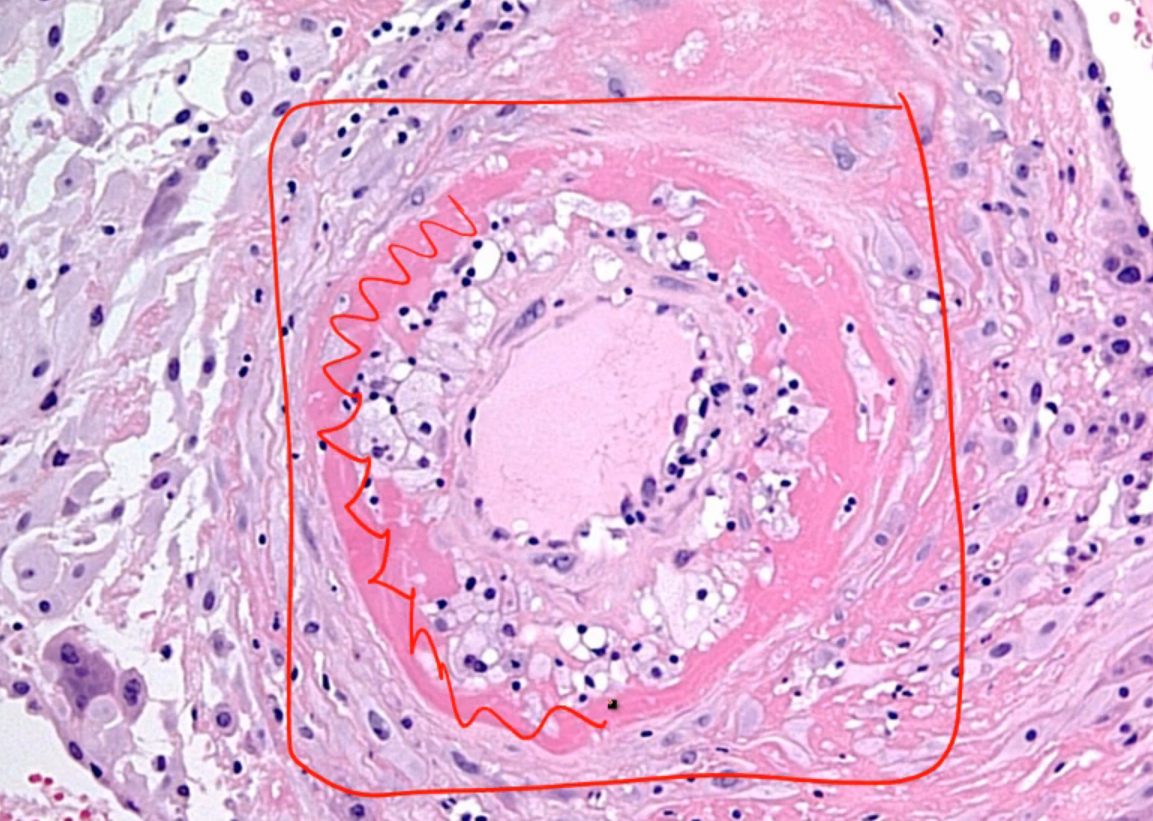 Fibrinoid necrosis = necrotic damage to blood vessel wall