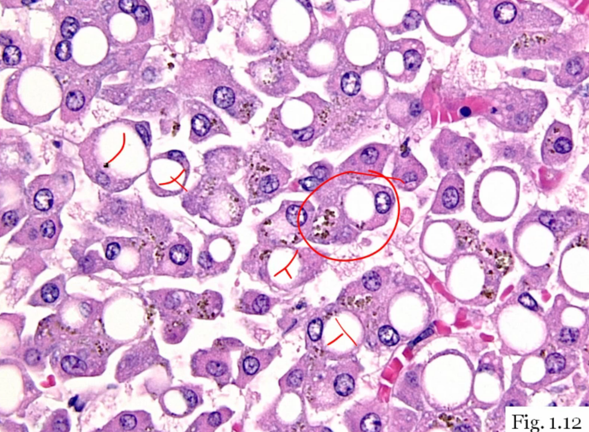 Fatty liver! Showing fat droplets inside hepatocytes