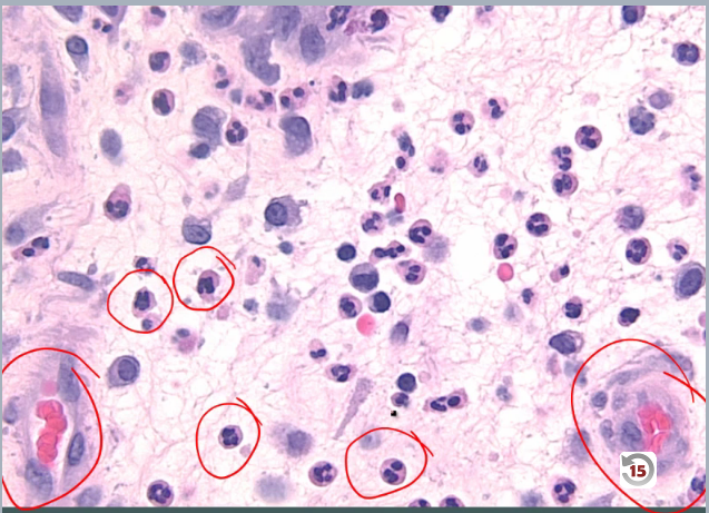 (while lymphocytes, plasma cells, and fibrosis would be indicative of chronic inflammation)