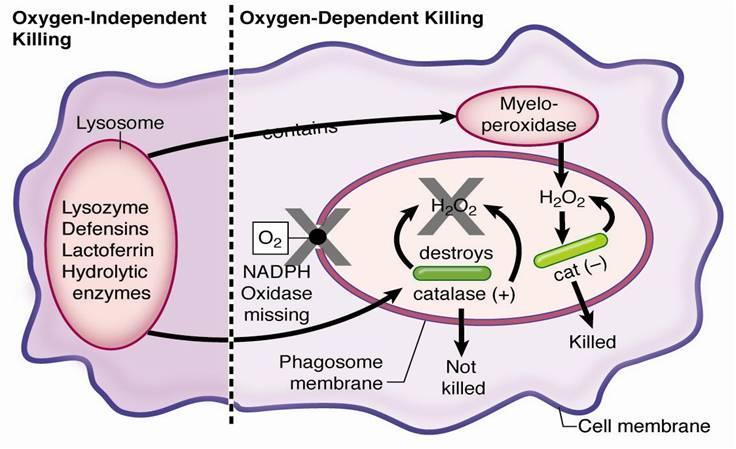 - so need NADPH oxidase, SOB, and MPO (all 3 enzymes) for O2-dependent killing