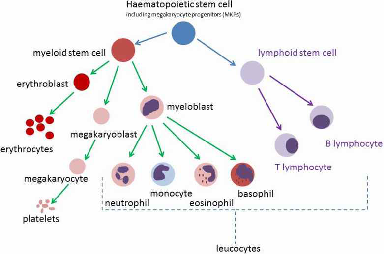 5 neoplasms from the HSC –> myeloblasts and leukoblasts