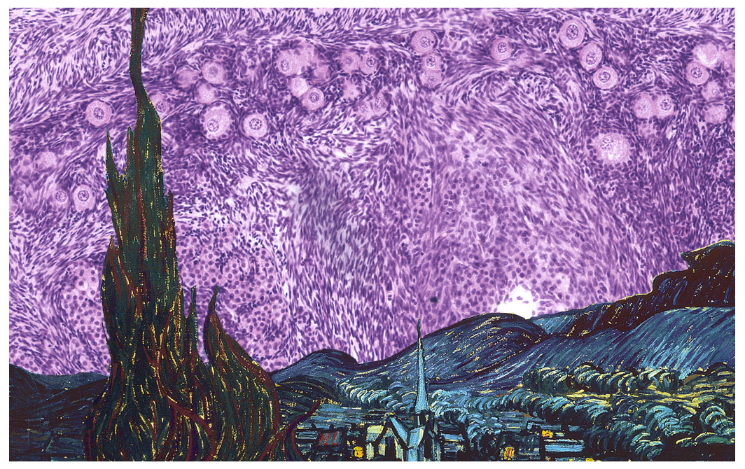 Buzzword: ‘starry sky’ = Burkitt Lymphoma = neoplasm of intermediate shaped B cells caused by c-myc translocation