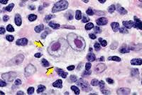 Reed Sternberg (‘owl eye’ cells = multi-lobed nucleus w/ prominent nucleoi