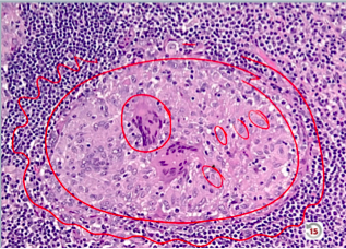 Granuloma = aggregate of epitheliod histocytes (meaning lots of cytoplasm so very pink)
