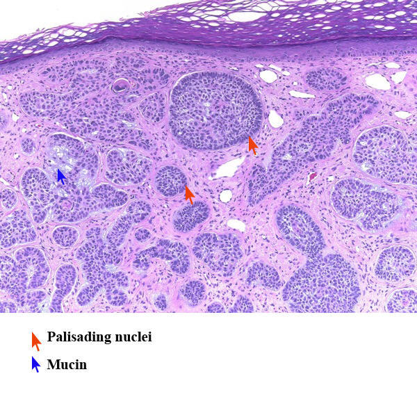 Hallmark histologic feature of basal cell carcinoma