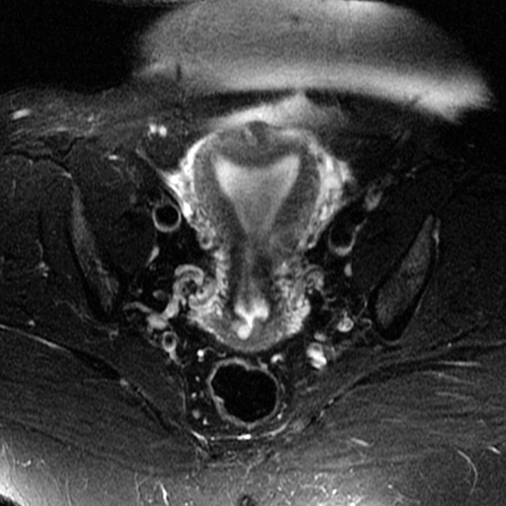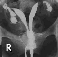 (Septate uterus - notice normal outer contour distinguishes this dx from bicornate uterus)