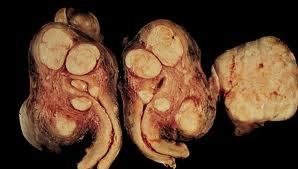 (Multiple, white, whorled masses in ovary = leiomyoma)