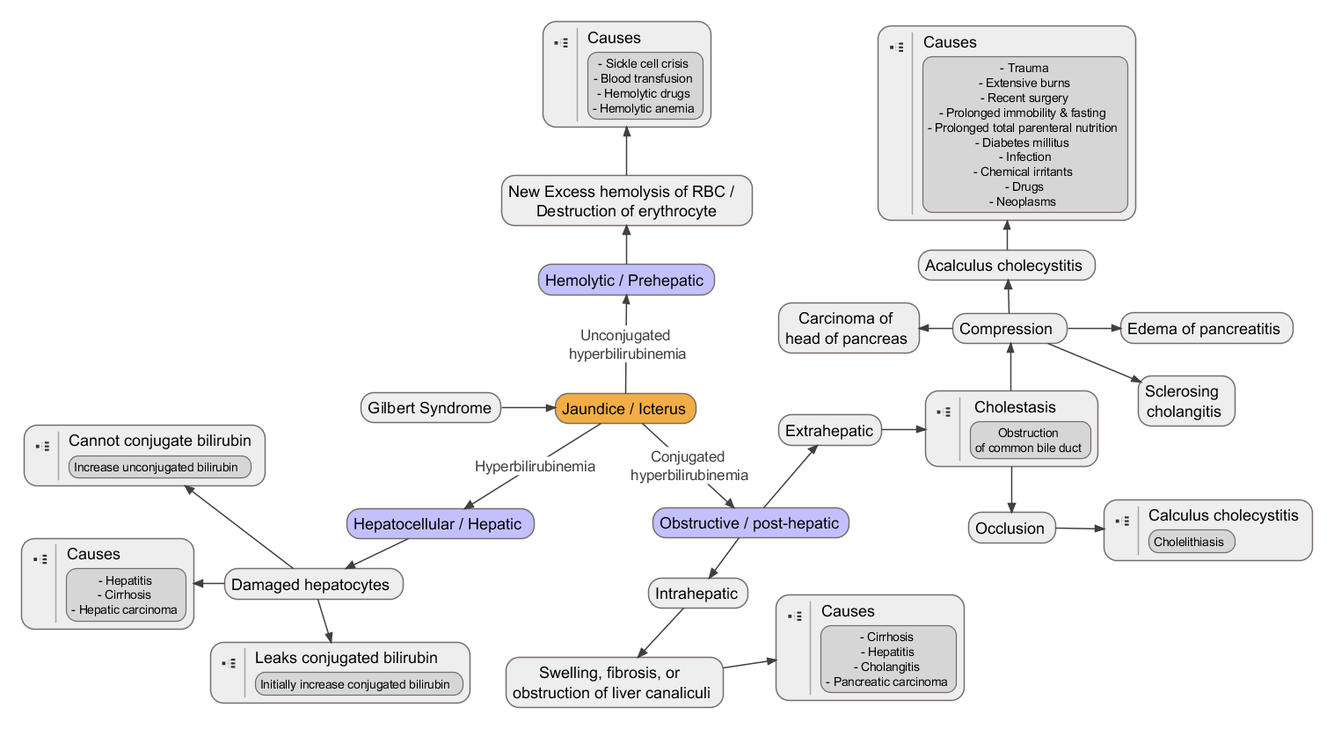 (pale faeces, dark urine)