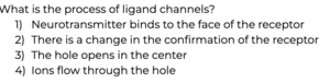 1) Neurotransmitter binds with receptor