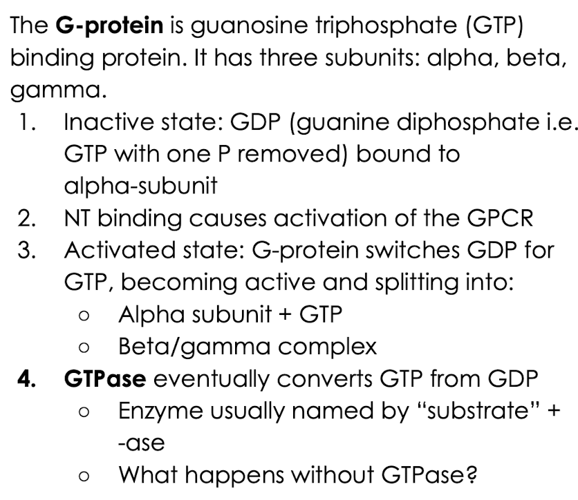 7) Off reaction triggers the alpha subunit to no longer be able to activate the effector protein