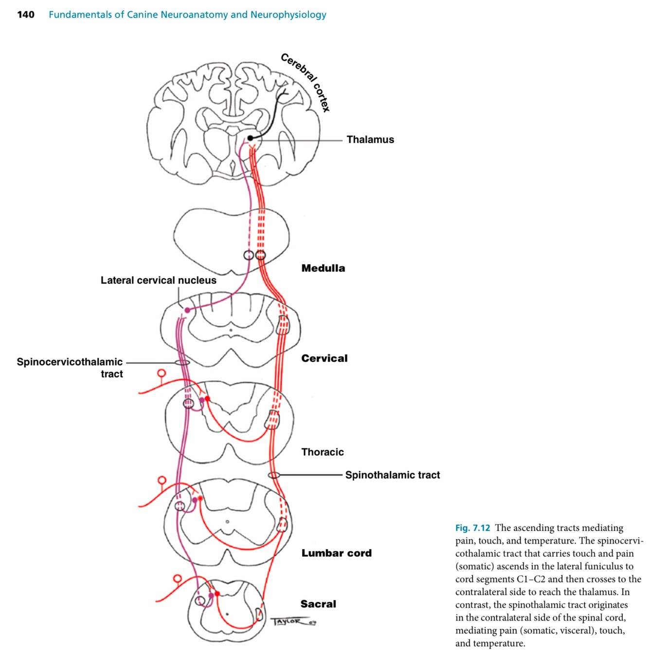 contralateral fasciculus proprius thru thoracic and cervical spinal cord >