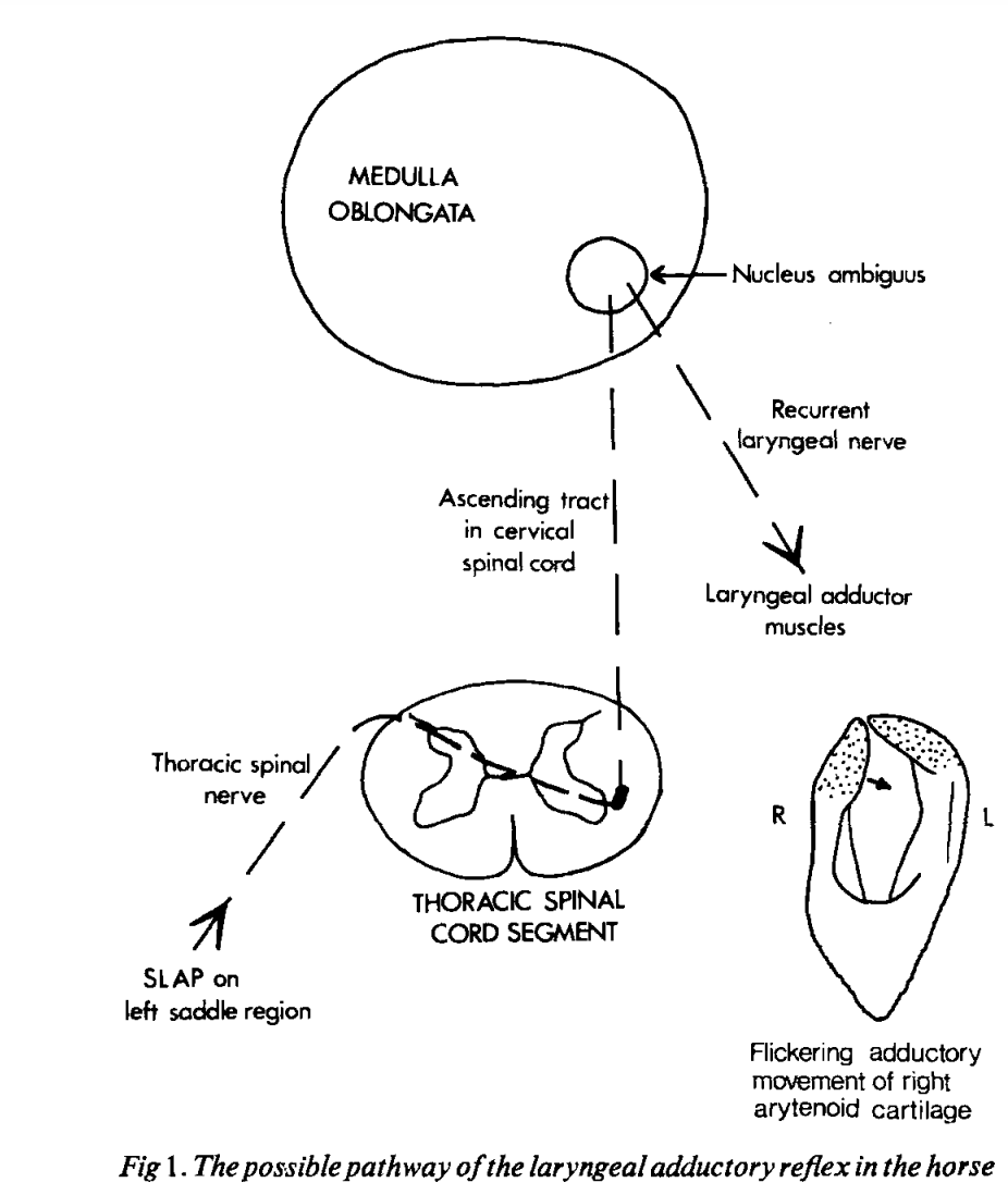 stimulus (brisk slap to the saddle area of thorax) >