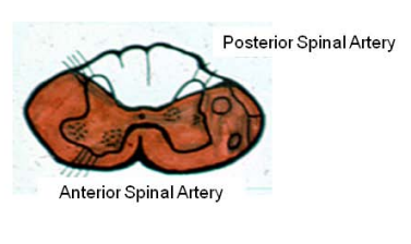 There are two posterior spinal arteries which each supply the region of the dorsal columns on either the right or left side. The single anterior spinal artery supplies the entire anterior 2/3rds of the spinal cord. An anterior spinal artery stroke would affect the bilateral corticospinal and lateral spinothalamic pathways as well as the lower motor neurons (LMNs) at the level of the lesion. A stroke affecting one of the posterior spinal arteries would impact the dorsal column pathway on that side.