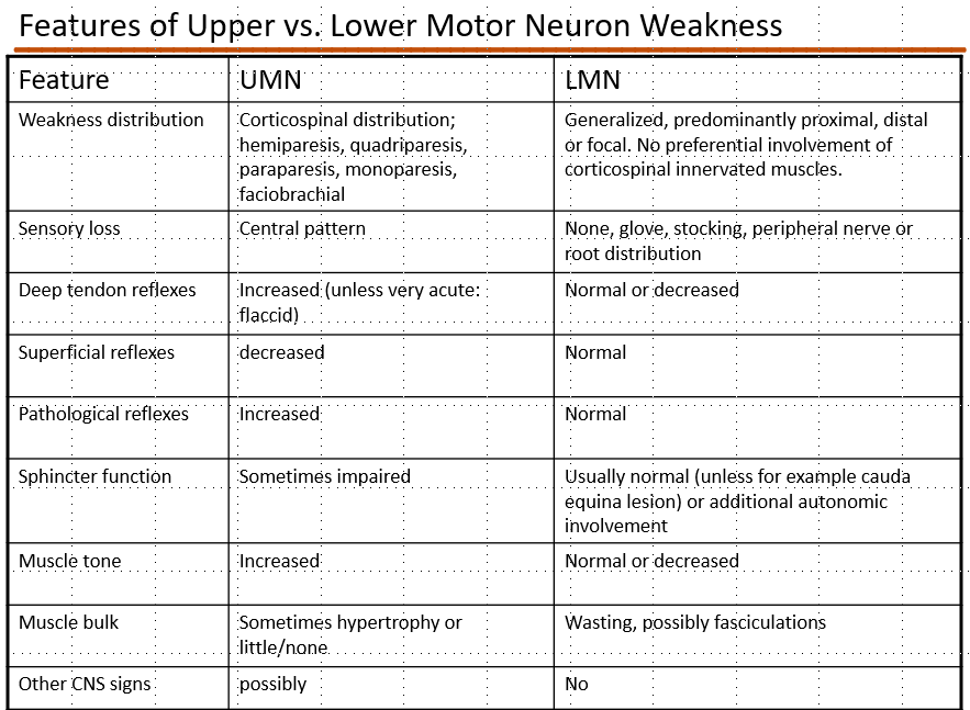 These are caused by damage to motor pathways (corticospinal tracts) anywhere from motor nerve cells in the precentral gyrus of the frontal cortex down to the synapse with the anterior horn cells in the spinal cord