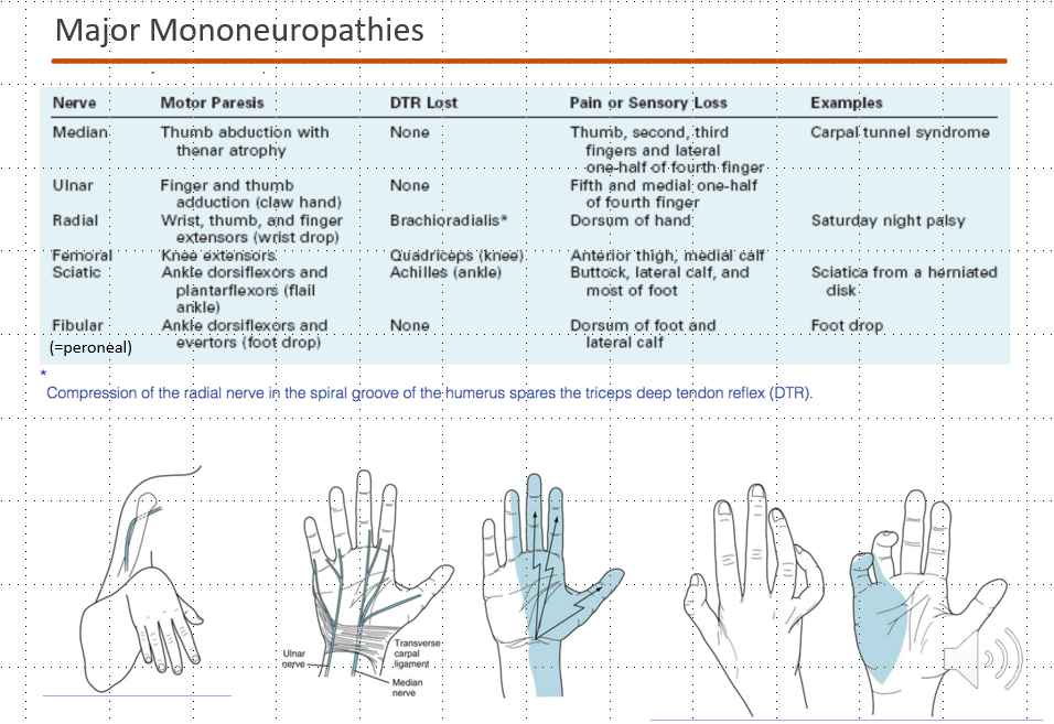 motor neuron disease, spinal muscular atrophy, (lead poisoning, poliomyelitis,…)