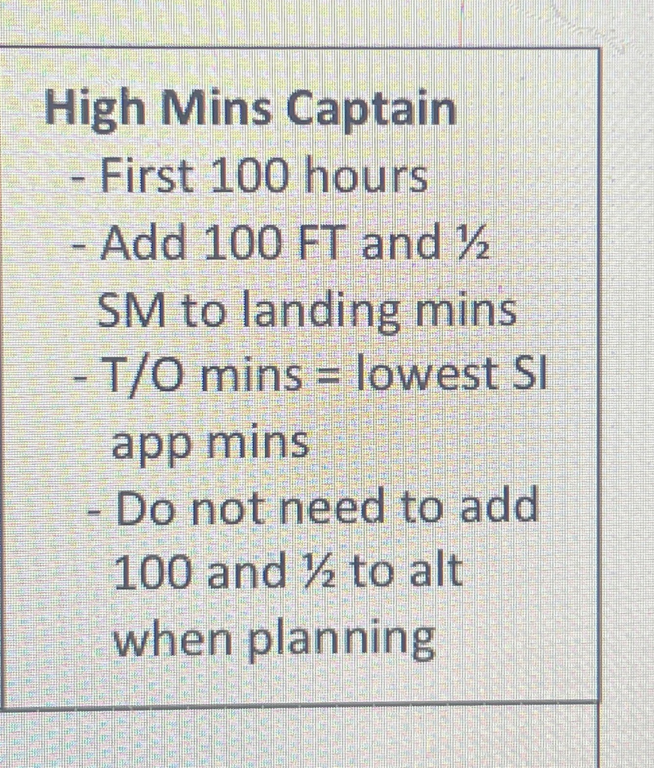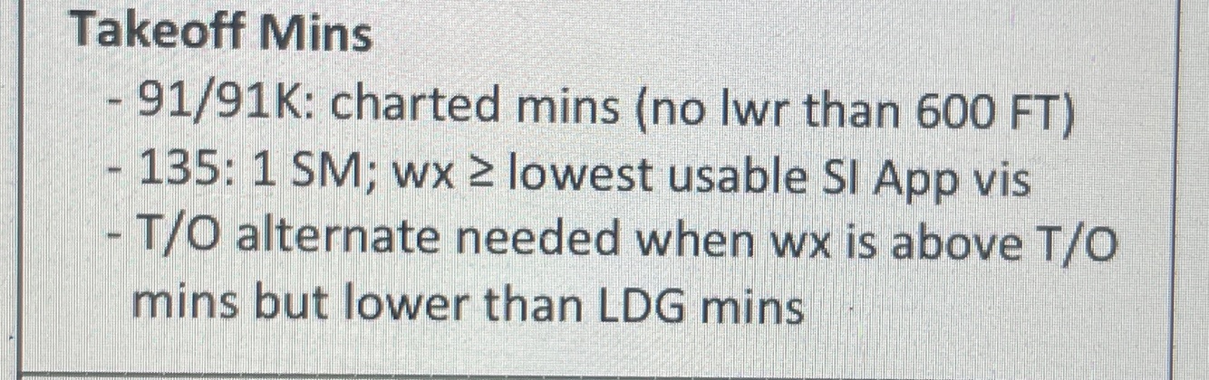 Take off mins