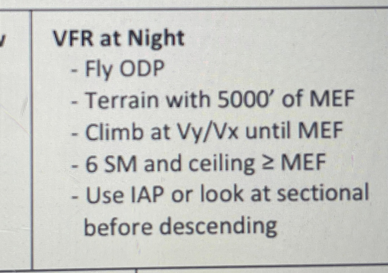 VFR at night