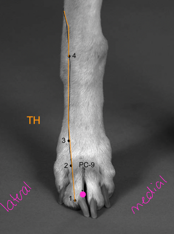 On the medial aspect of the fourth digit of the thoracic limb at the nail bed