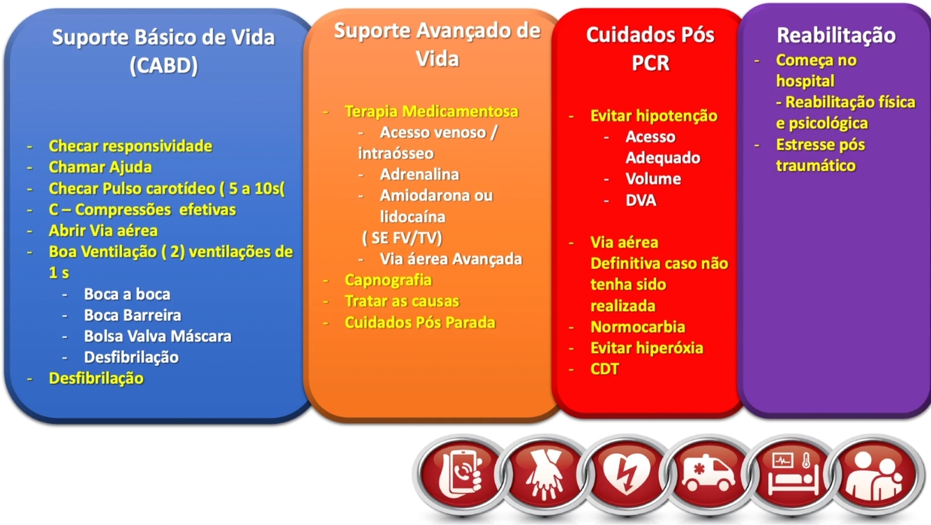 Quais as etapas da cadeia de sobrevivência detalhadas?