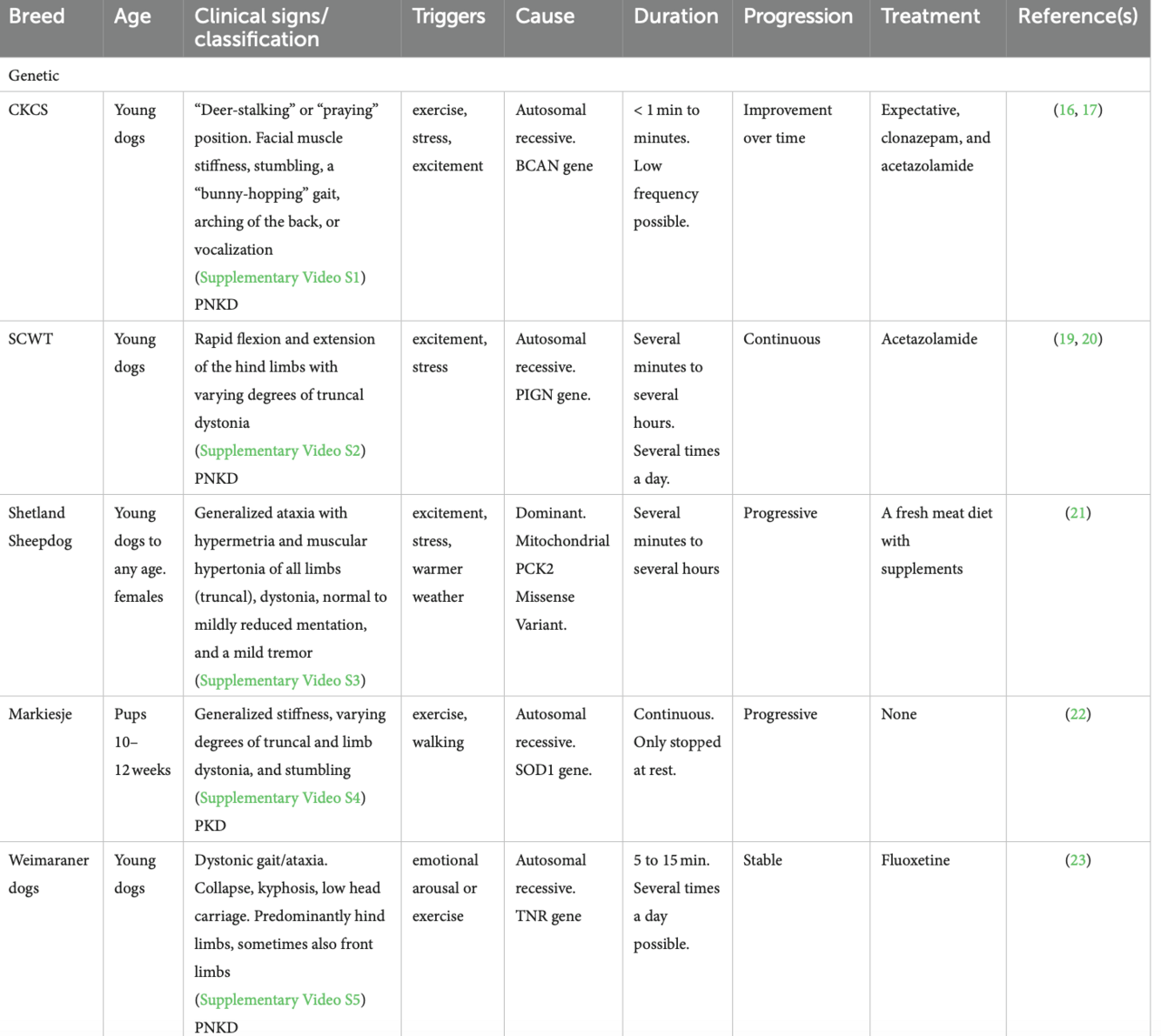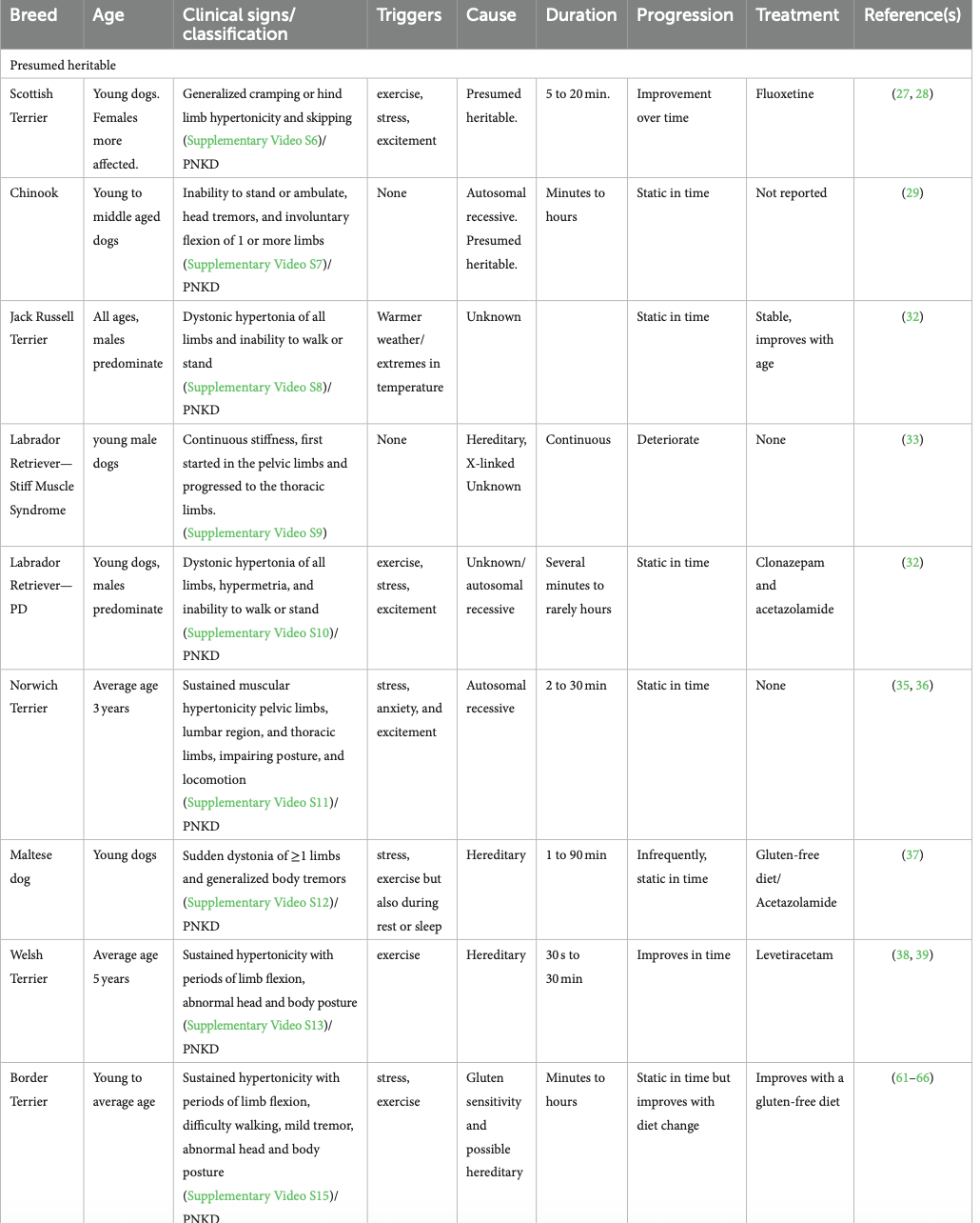 List breeds with presumptive genetic PD
