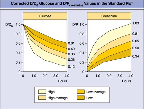 - dialysate to plasma ratio (D/P ratio) of creatinine and glucose