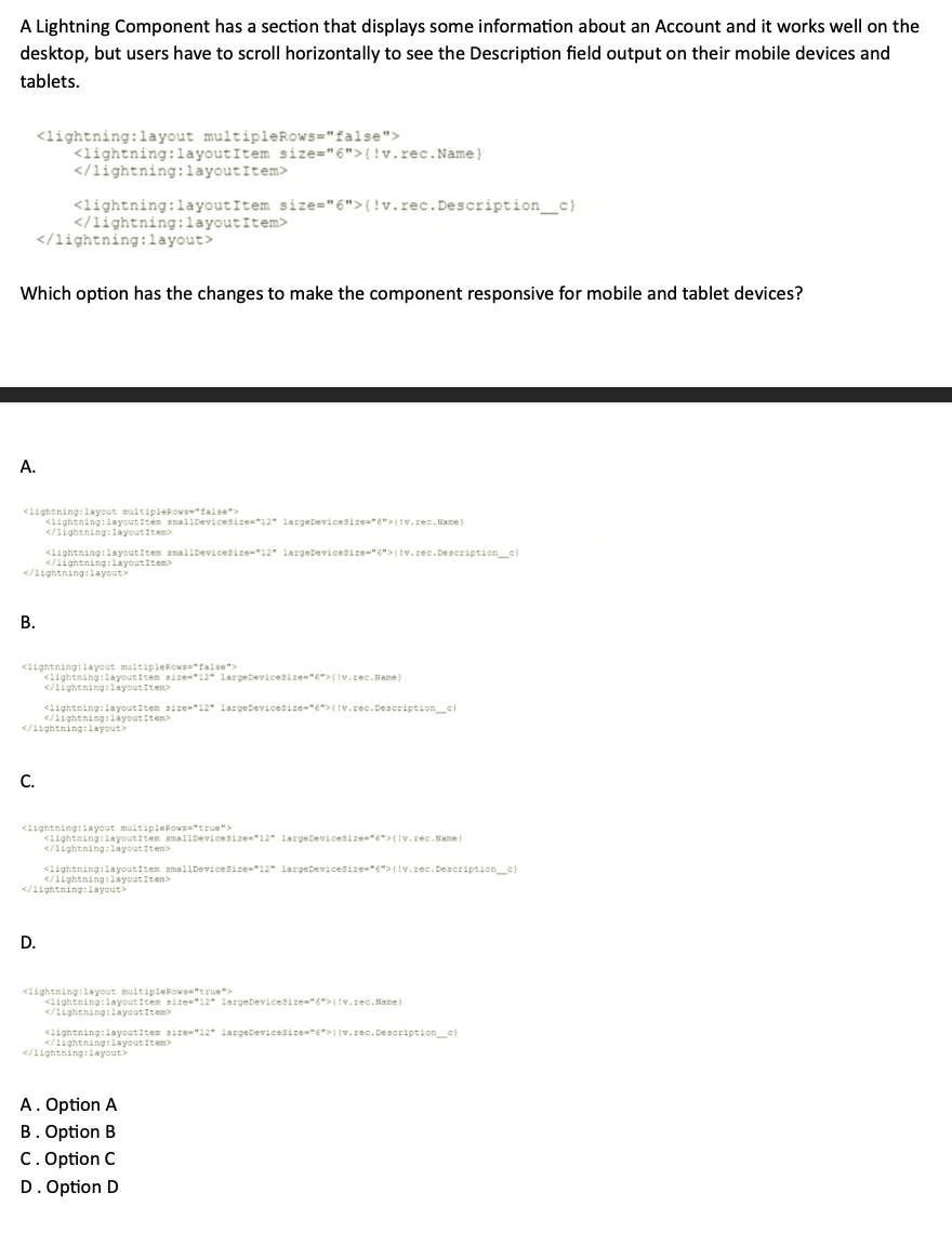 A . The member’s Name and Option of the class MyDataWrapper should be annotated with @AuraEnabled too.