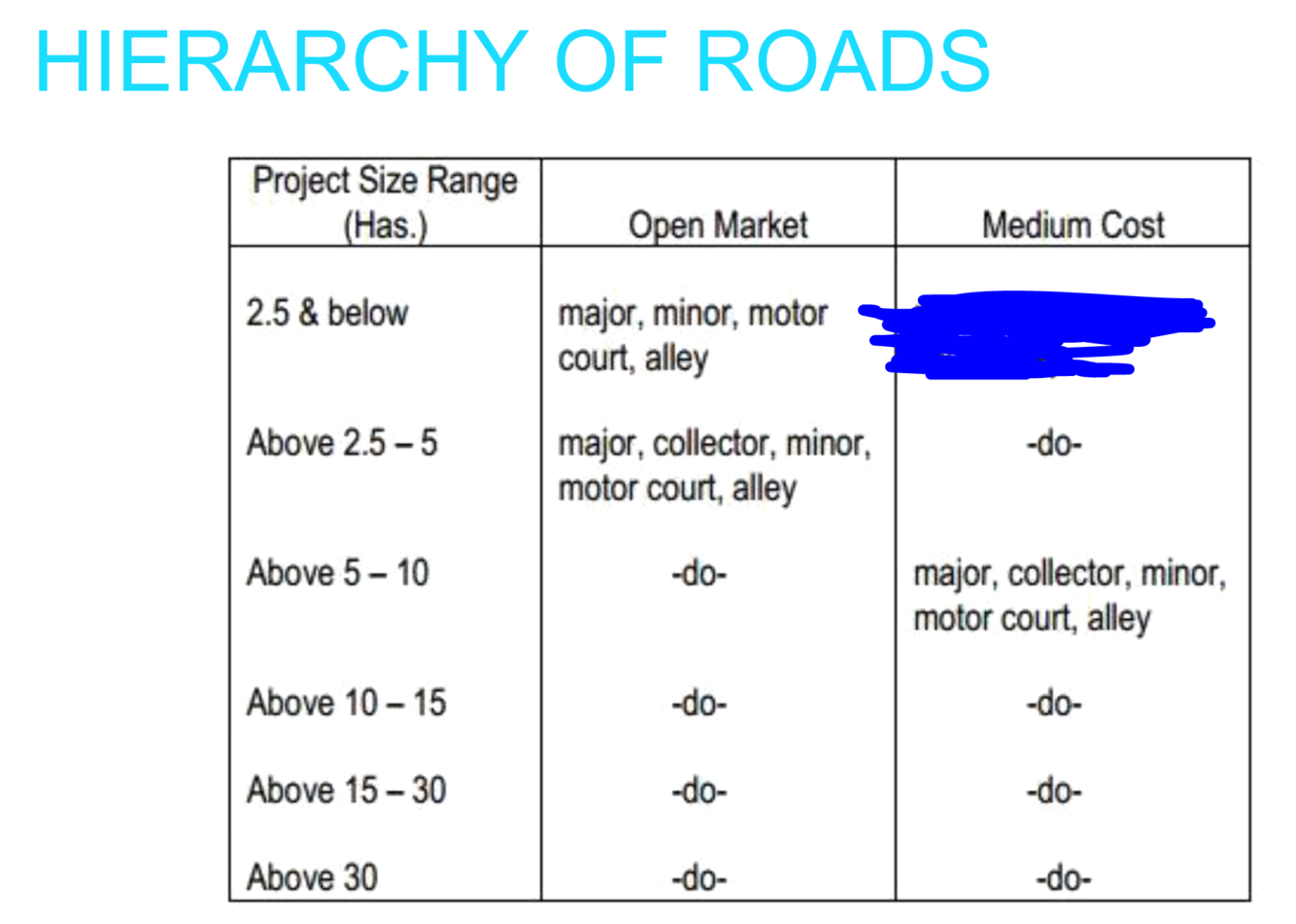 ____ minimum (20 lots / ha.)
