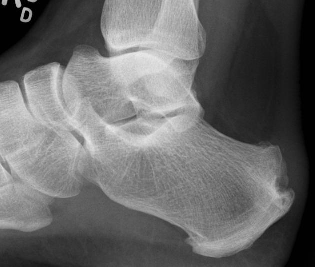 Alargamento / arredondamento do processo lateral do tálus ao impactar no sulco do calcâneo