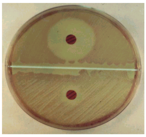 S. epidermidis (S) and S. saprophyticus (R) with novobiocin disc