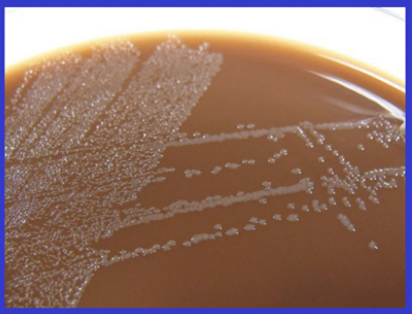 wavelike swarming pattern (no individual colonies are seen, bacteria spread through the entire surface of the plate)