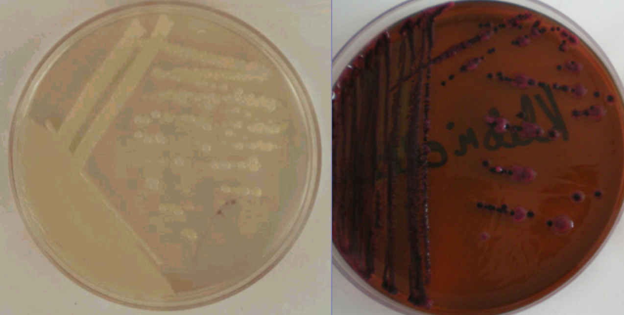 E. coli and Salmonella on brillant green medium